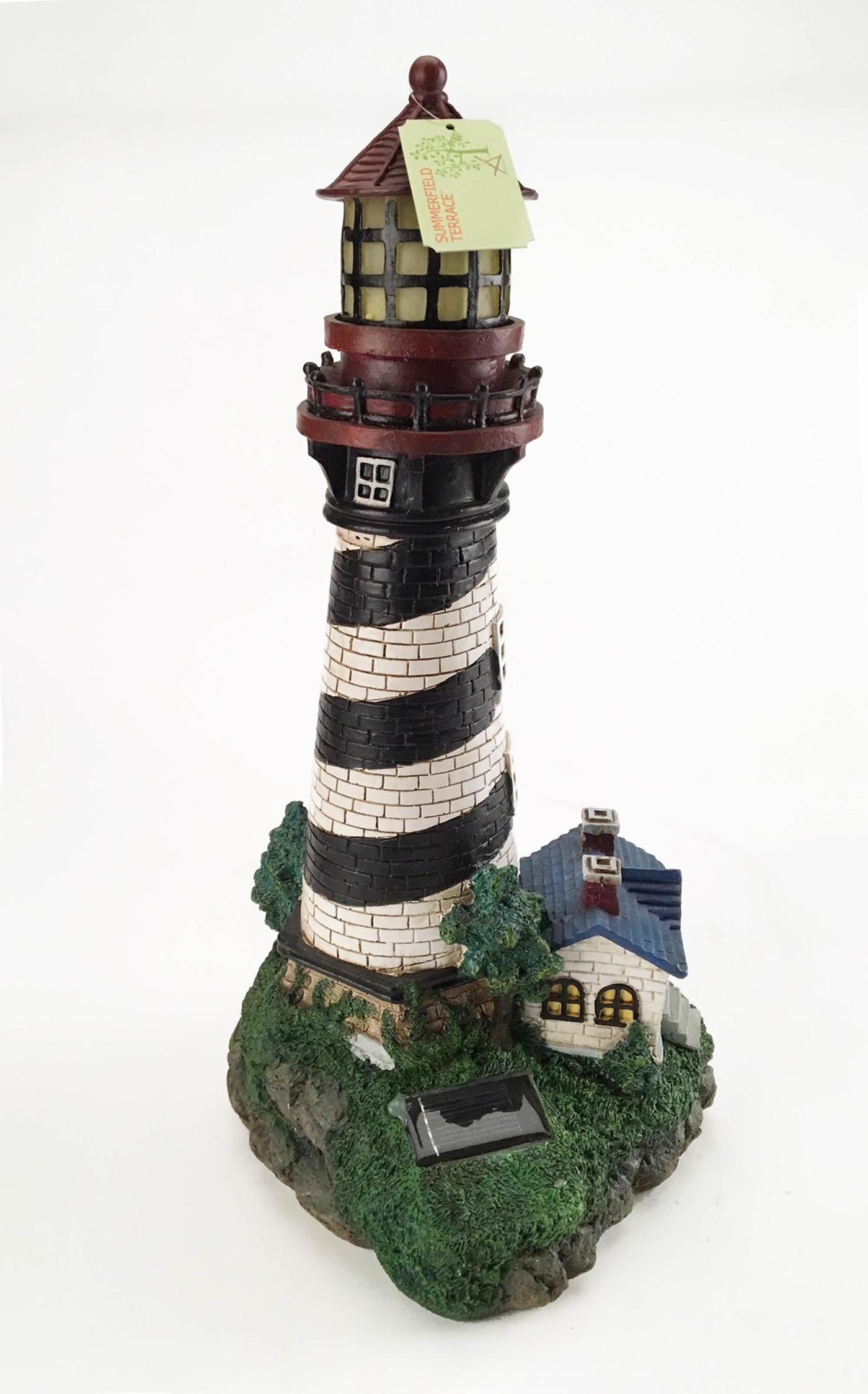• This handsome lighthouse will add a nautical touch to any garden! Makes a playful lighting and décor addition to either your indoor or outdoor space!