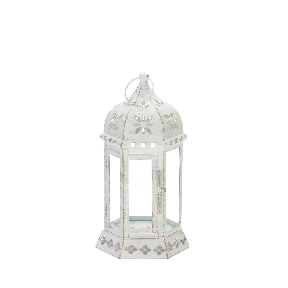 • Create a stylish candlelight display with this charming and chic floral metal lantern. It features gorgeous floral cut-out detailing along the top and base. Place a small candle inside the lantern and hang it from the top ring or set it on your tabletop for versatile styling.