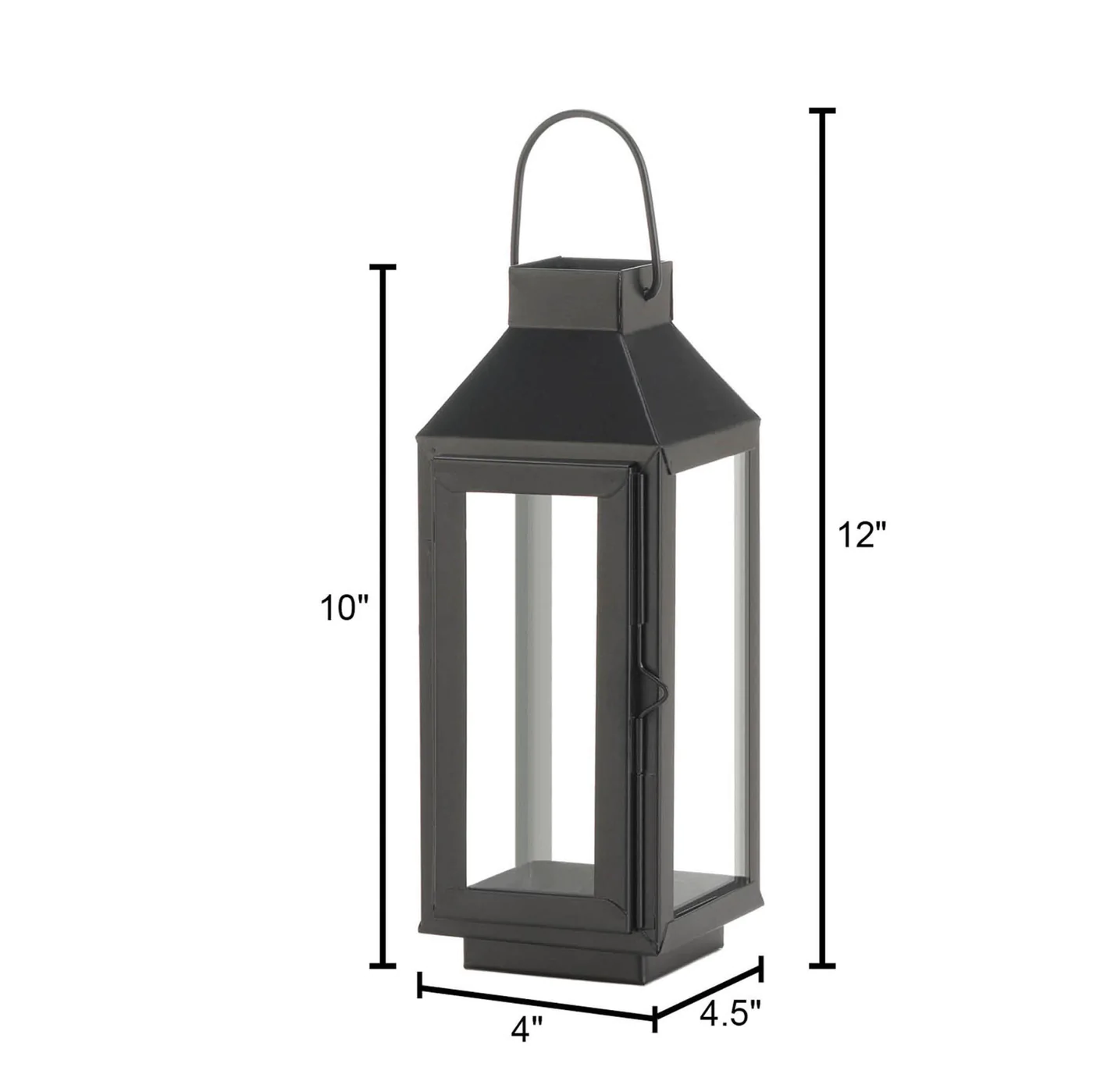 • Charming and traditional, this small square top black lantern will make a beautiful addition to your indoor or outdoor living space. This lantern features a durable iron frame with an open square top and glass window panes. Complete with a sleek matte black finish and large handle, this candle lantern will look stunning hanging in your backyard or sitting on top of your mantel.
