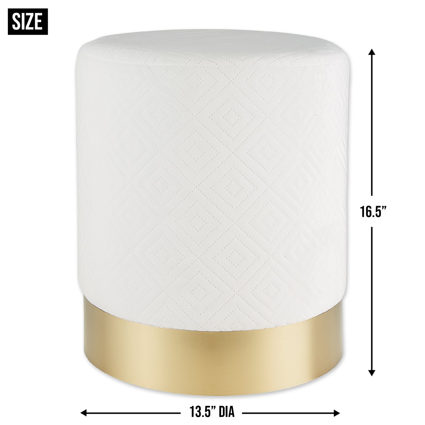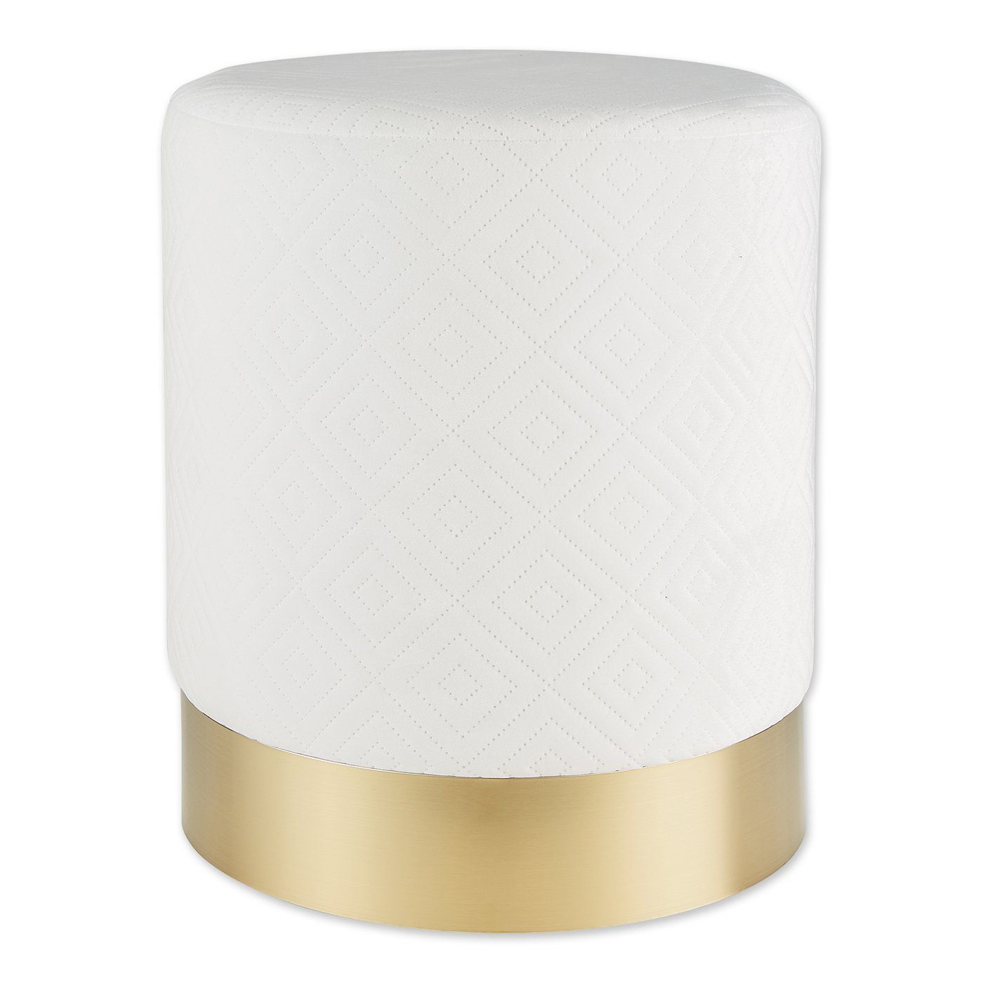 Add the finishing touch to your living room decor with this modern white velvet covered stool. The simple design will coordinate effortlessly with a multitude of decor and add a subtle touch of sheen to any room. A stylish accent that can also serve as a plant stand, footrest, side table, or stand-alone statement piece, this stool is both versatile and beautiful. Can be given as a great housewarming gift that will elevate any home's interior decor or just used as a simple way to freshen up your space! Weight 6 lbs. 13.5 x 13.5 x 16.5". Iron, Sponge, Velvet Polyester. UPC Number: 849179044985. To clean your eye-catching stool dust lightly or wipe with damp cloth as needed.