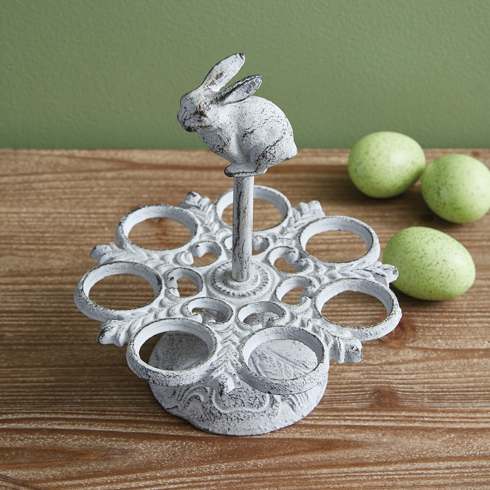 Whether you're preparing a delicious breakfast or showcasing your farm-fresh eggs, our Bunny Egg Holder is sure to be the highlight of your kitchen decor. This item is crafted from cast iron and holds 7 eggs.