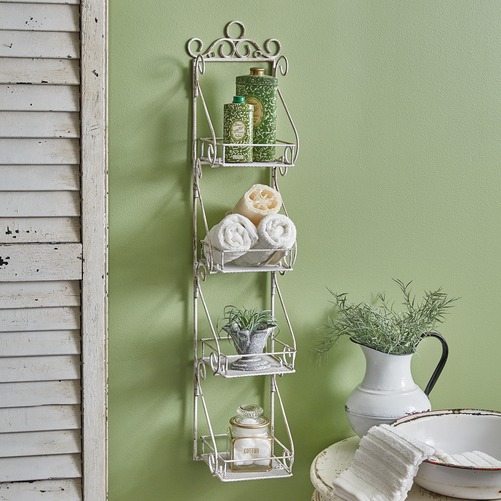Designed to enhance the elegance of your space, this finely crafted shelf is the perfect blend of form and function. Its sleek design offers a sophisticated storage solution for your essentials while adding a touch of charm to your decor. This item is crafted from metal. To hang, use its two screw-hole hangers.