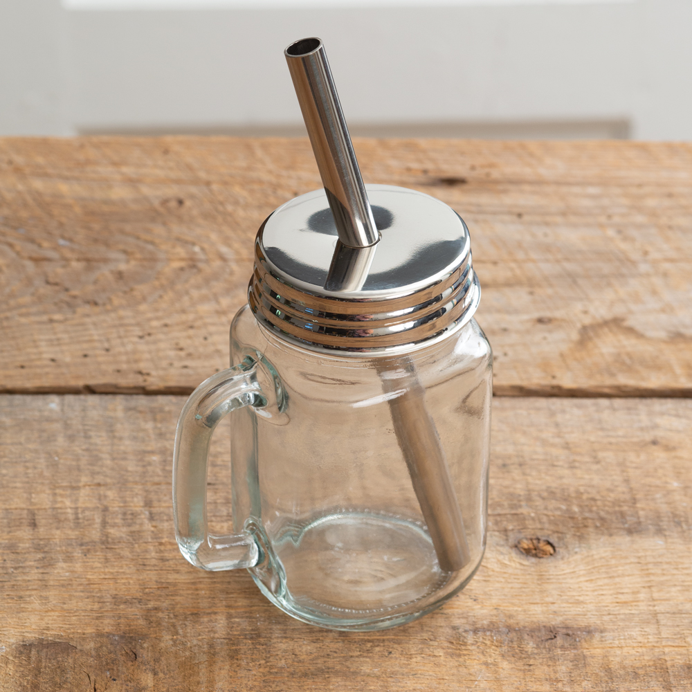 This set of mason jar lids and straws fits any of our mason jar mugs or any standard mason jars. The lids and straws are made from 100% stainless steel. The set includes two lids, two straws, and two straw brushes all conveniently packaged as a gift set.