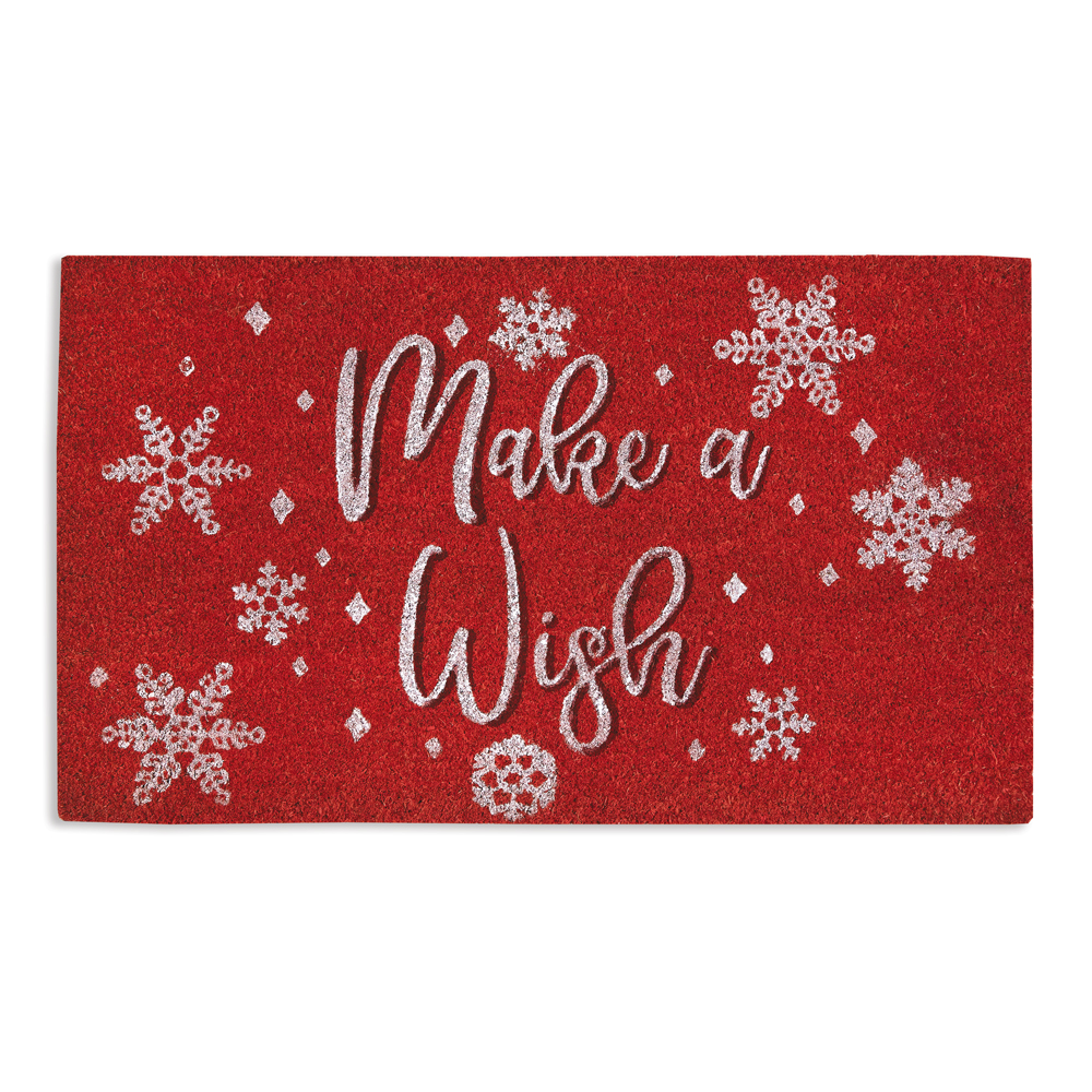 A reminder to make a wish is on your red doormat this year, keeping the Christmas spirit alive! Each mat is designed with colorfast fibers on a slip resistant rubber backing. This makes it easy to knock debris off your shoes when coming in and preventing a fall when the ground is wet. These mats are easy to clean as you simply shake the dirt out. Fibers will come loose as you begin to use the mat which is perfectly normal.