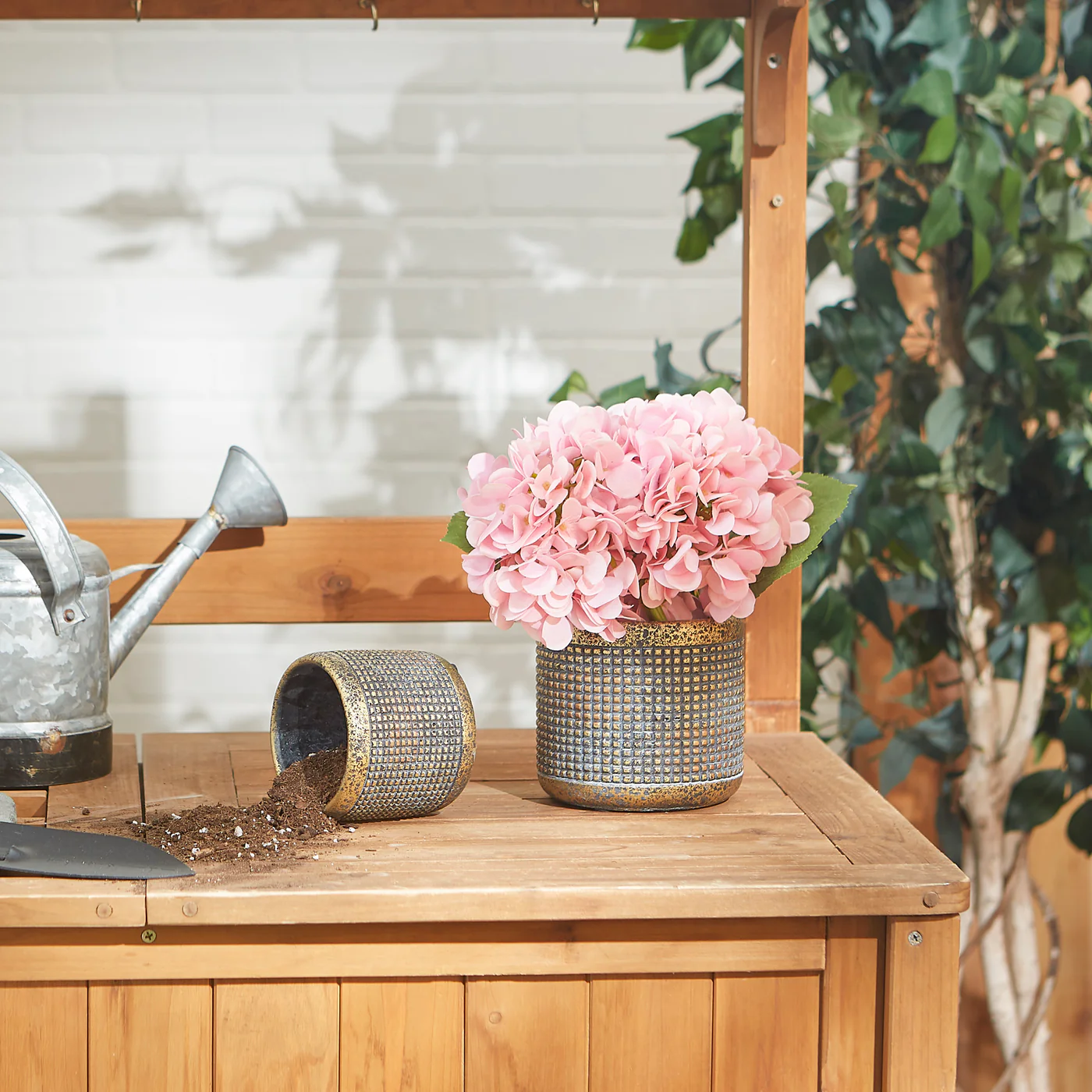• These unique pots can be used for both indoor and outdoor plants and flowers. Set comes with 2 pots with the large pot measuring 5 x 5 x 4.75" and the small pot measuring 4 x 4 x 3.75".