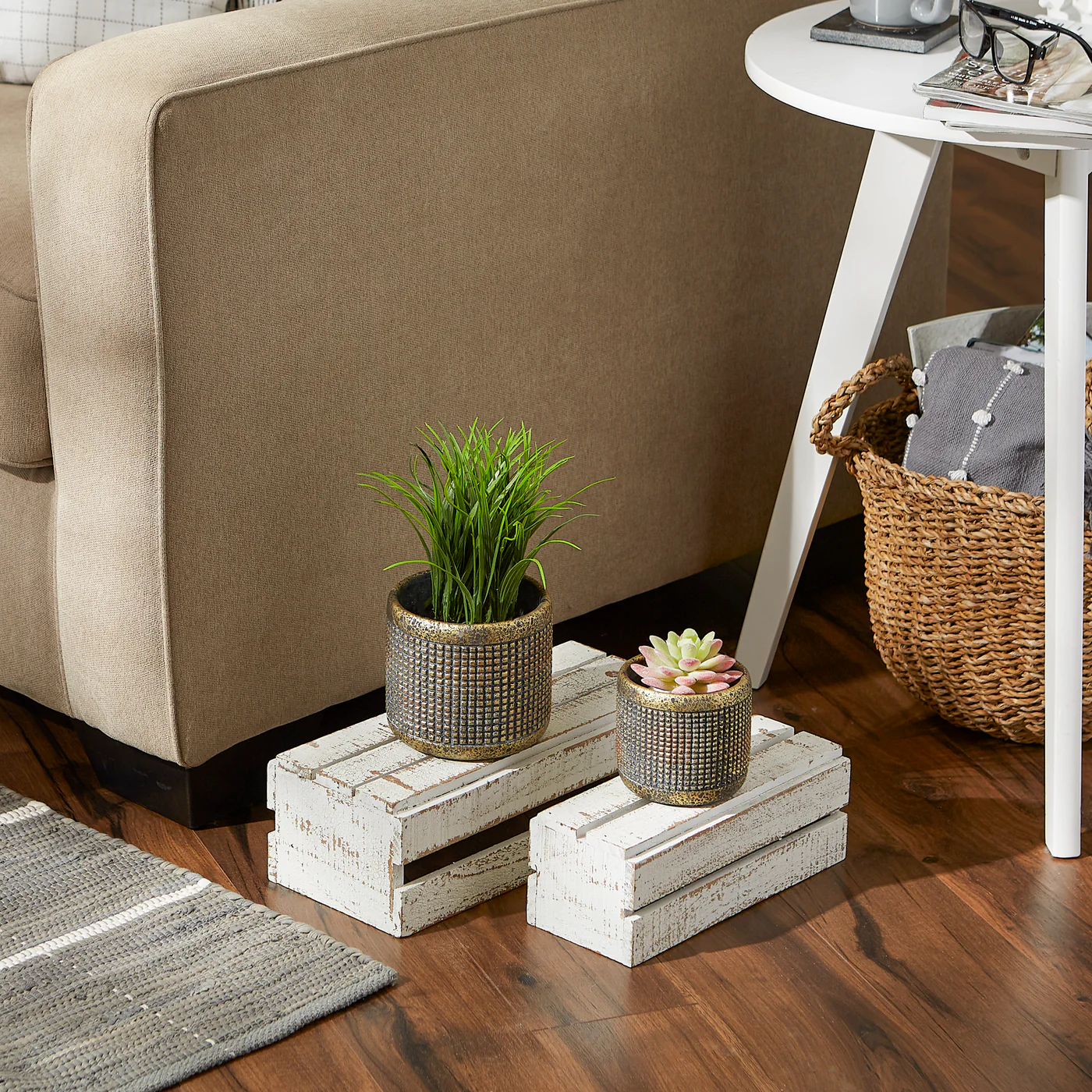 Contemporary Metallic Cement Flower Pot Set of 2 - Stylish Home Decor