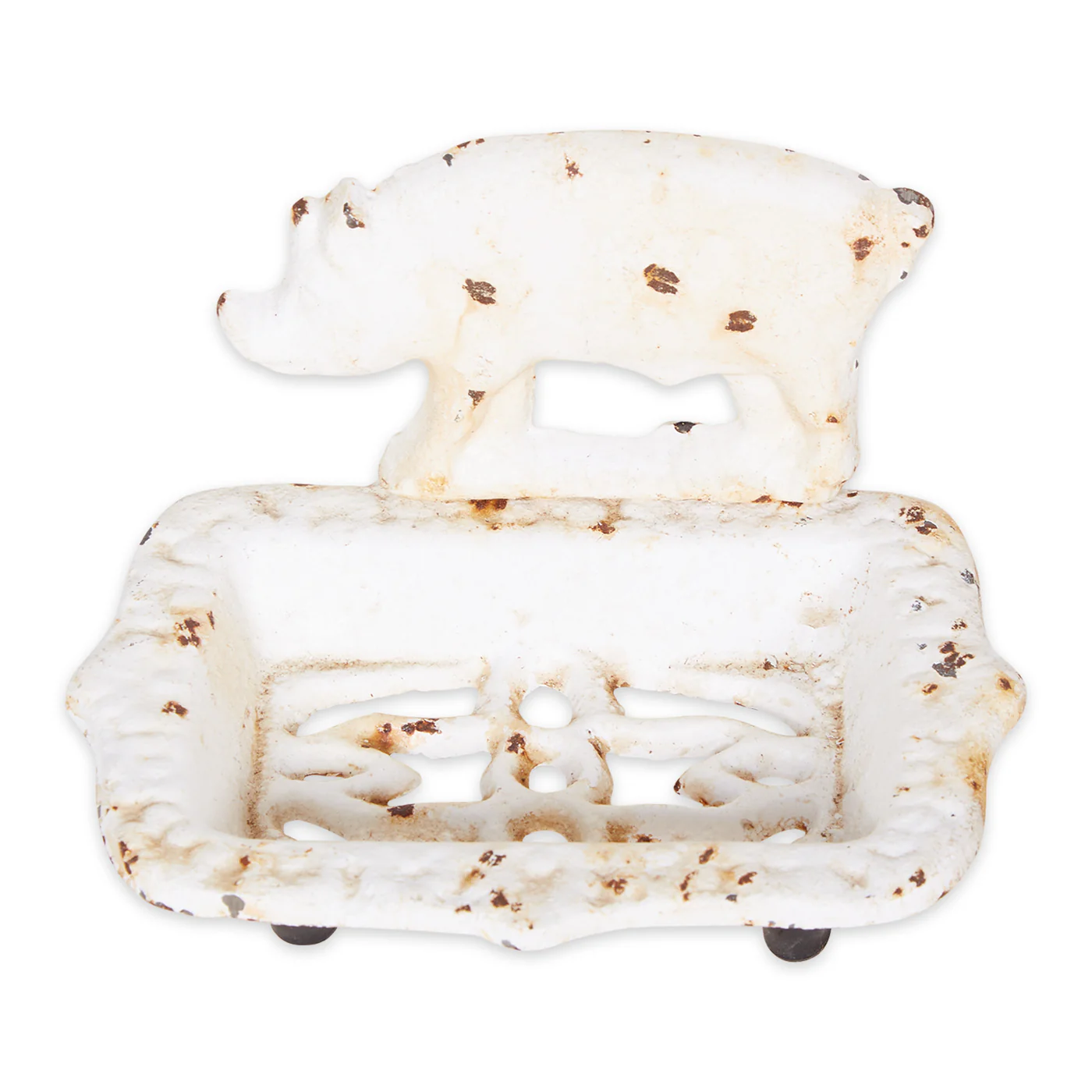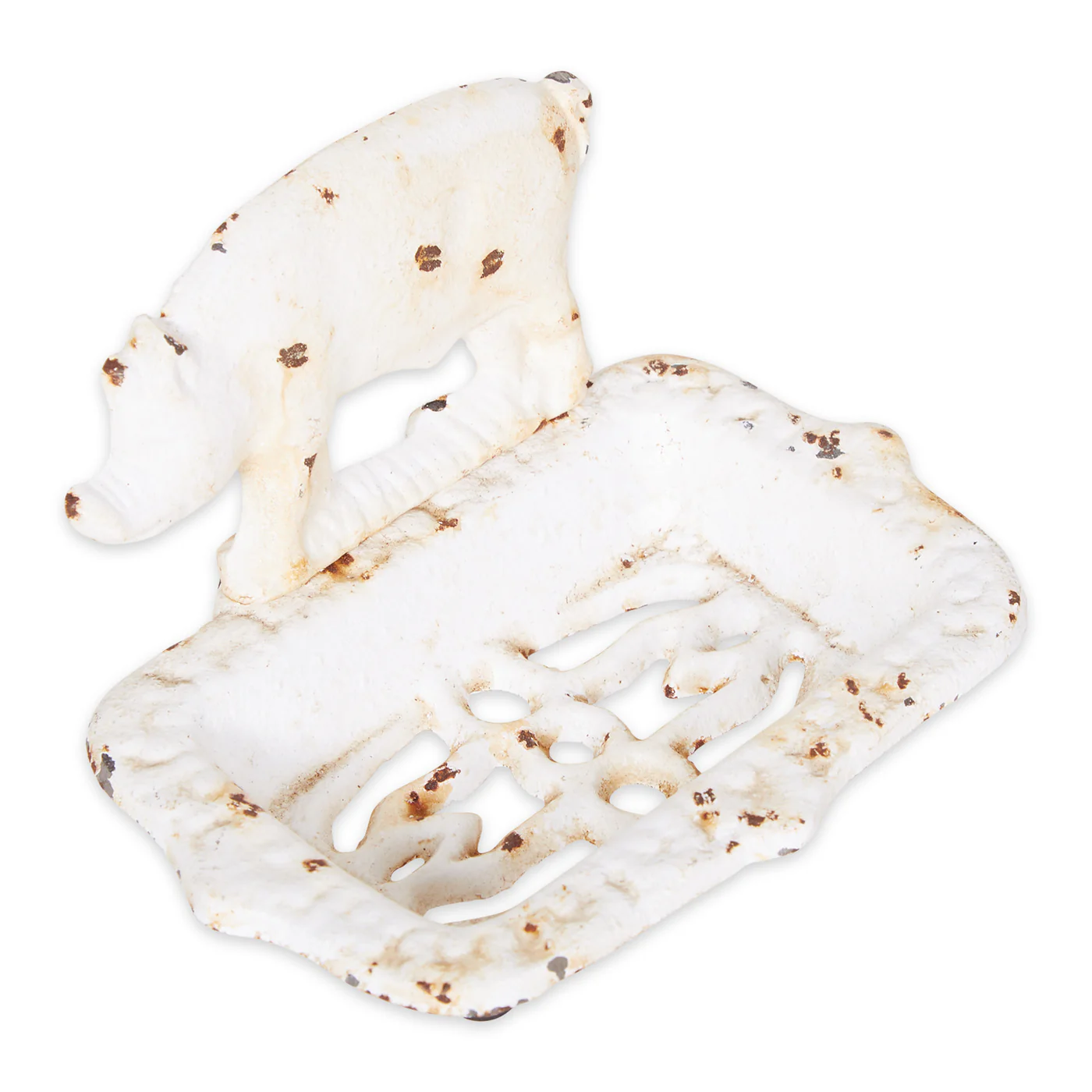 • This charming farm pig soap dish is designed with a distressed white finish, add charm to your space.