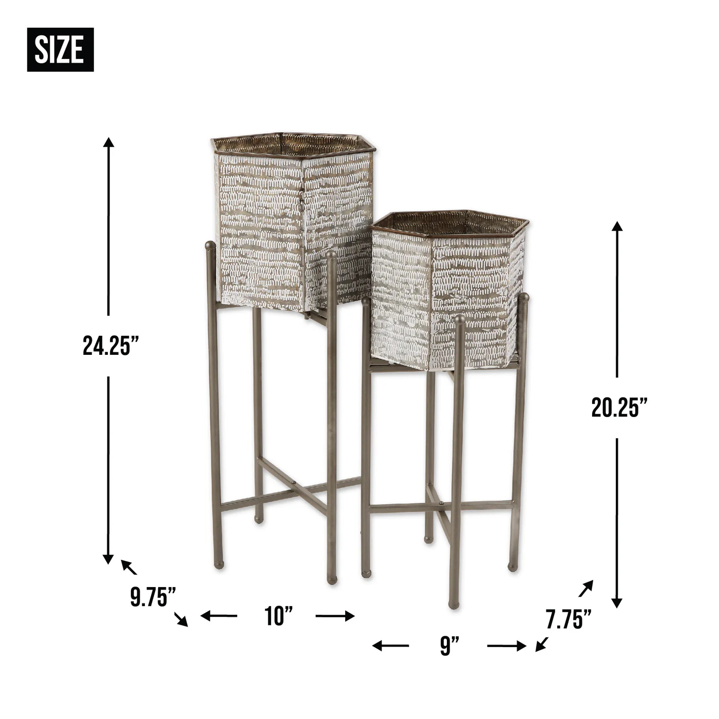Modern Hexagon Bucket Plant Stand Set of 2 - Stylish and Functional
