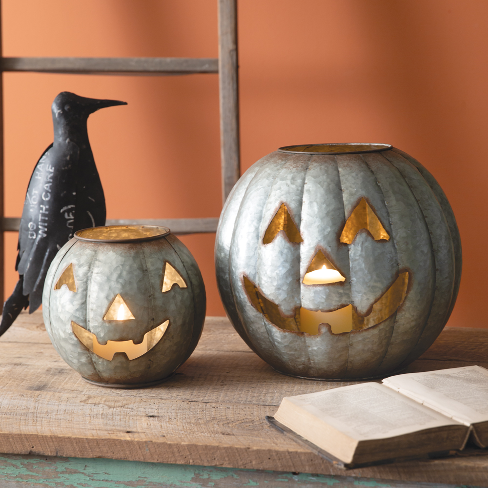 Set of Two Galvanized Pumpkin Luminaries